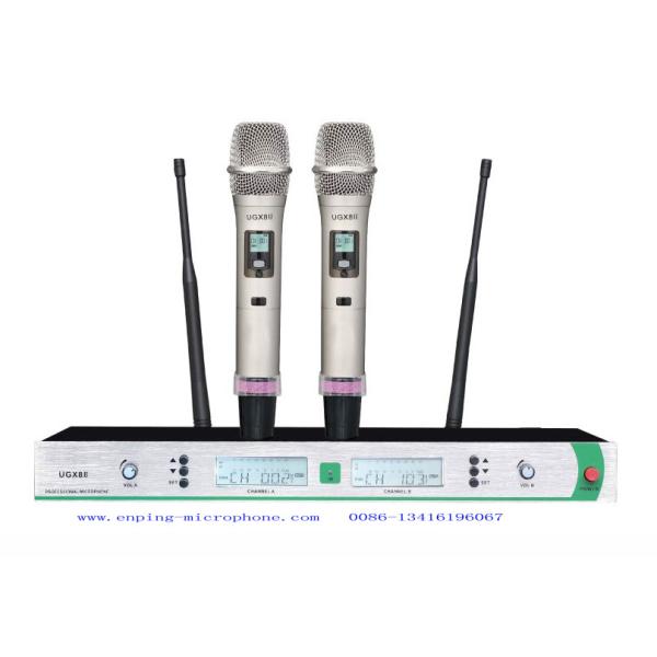 good quality low price UHF band /competitive low price /double channel 2 handheld headset MIC Lavalier Mic Clip Mic / selectable frequency / rugged rack size receiver/